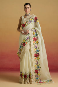 Ivory Cutwork and Floral Threadwork Amaryllis Saree