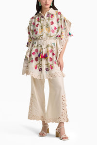 The Ivory Chanderi Cutwork Pants with Side Slit Detail Coord Set embodies sophistication and intricate craftsmanship, designed for those who appreciate elegance with a modern edge. Crafted from luxurious ivory chanderi fabric, renowned for its lightweight and graceful texture, this ensemble offers a blend of comfort and refined style suitable for various occasions.