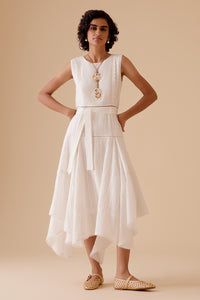 Featuring the most unique lace designs and an effortless interplay of textures and pintucks, the Denise dress is crafted to move seamlessly from day to night. Made from 100% cotton, this sleeveless, midi-length dress is fully lined and comes with a separate belt for versatile styling.