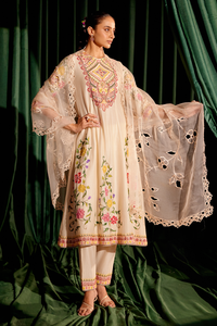 Ivory Embroidered Flared Kurta and Narrow Pant with Dupatta