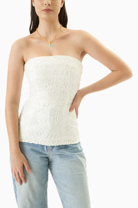 Add a touch of romanticism to your evening look with this strapless top crafted from lace. The classic shape is corseted without boning for added definition and a comfortable fit. Available in black and white.