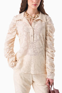 Featuring delicate lace composition, the Havana ivory lace shirt offers a timeless, elegant look. It showcases statement gathered sleeves and a straight fit, designed without lining for a light, breathable feel.