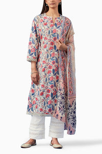 Featuring Ivory Kala lawn cotton kurta and palazzos with crochet lace detailing, paired with a mul dupatta with lace edging.