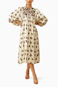 Featuring by Nikasha from Kohinoor Collection. Embrace timeless elegance with this poplin tier dress. Adorned with intricate crouching and bead embroidery around the neckline, this dress combines classic prints with refined detailing for a graceful, sophisticated silhouette.