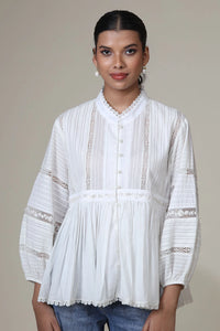 Comfort meets charm in this fit-and-flare top.Delicate lace details and textured voile on the bodice and sleeves come together to create an effortlessly special look.