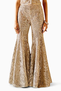Featuring Ivory Mirrorwork Sharara by Twenty Nine India's Bahar Collection. This has a graceful and Wide-legged silhouette, along with Mirrorwork.