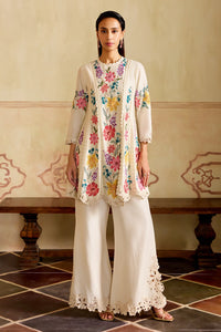 Ivory Mosaic Vines Short Kurta with Bell Bottoms