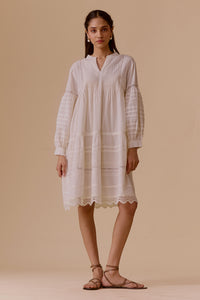 Featuring elegant pintucks and delicate lace insertions, the Nur dress is a breezy essential for relaxed summer days. Crafted from cotton with a flowy silhouette and a separate slip for easy layering.