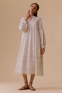 Featuring elegant pintuck detailing and delicate lace insertions, the Nur dress is a relaxed, 100% cotton silhouette perfect for laid-back summer days. It comes with a separate slip for added comfort and coverage.