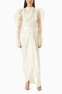 Redefine your charming look with this Ivory Organza Shirt With Skirt Co-ord Set. A classic white organza lace detail shirt and skirt is cut in satin fabric, it assures a soft and soothing touch against the skin. Style this set with a pair of high heels & statement earrings.