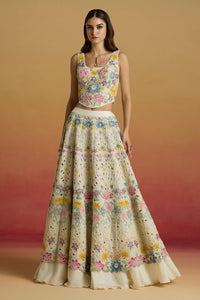 Ivory Pastel Floral Threadwork Corset with Cordwork Amaryllis Lehenga