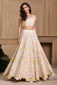 Ivory Pastel Cutwork And Beadwork Lehenga Set