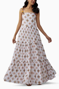 Presenting the ivory printed art georgette long trapese Dress, a refined piece that embodies grace and fluidity. Made from lightweight Art Georgette fabric, this dress features an elegant ivory shade adorned with intricate Basant-inspired prints, evoking the freshness and beauty of spring. The trapeze silhouette flows gracefully, offering a relaxed yet sophisticated fit that flatters all body types.