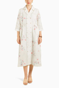 This stylish ivory printed side-gathered shirt dress in linen features a flattering, relaxed silhouette with elegant side gathers that enhance its shape. The soft, breathable linen fabric ensures comfort, while the subtle print adds a touch of sophistication. Perfect for casual or semi-formal occasions, this dress effortlessly combines comfort and style.