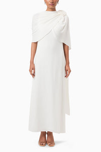 Ivory Rosette Draped Shoulder Gown