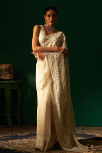 Ivory Saree with Swaroski Crystal Embroidery