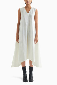 Discover the refined elegance of our raw silk bias ivory dress, designed with a focus on sophisticated details. This dress features intricate seam detailing that accentuates its sleek silhouette. The side seam pockets are beautifully finished with our signature shibori fabric welts, adding a unique touch of artistry. The asymmetrical design enhances its versatility, making it a stunning choice on its own or when paired with our exquisite capes. Perfect for both formal occasions and stylish daywear, this dress effortlessly combines luxury and modernity.