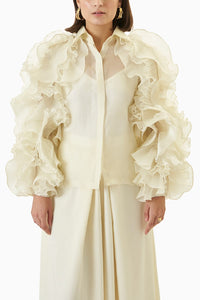 Every bit luxe and fabulous, this Ivory Ruffle Tousle Top encapsulates the energy of a dreamy fit and will surely turn heads.