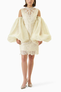 Featuring Ivory Vella Lace Dress. It's embroidered organza dress with detachable organza sleeves.