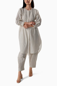 Effortlessly elegant, this ivory co-ord set blends intricate detailing with a relaxed silhouette. Crafted from premium organic fabric, it offers comfort with a touch of sophisticationâ€â€ÂÂÂperfect for timeless, understated style.