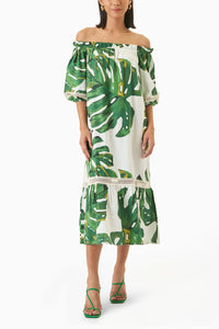 Featuring Ivy Dress by Sttavoss. This Dress is adorned with a delicate floral print and fine lace inserts, an off-shoulder, midi-length dress flatters every silhouette and is ideal for either day or formal evenings.