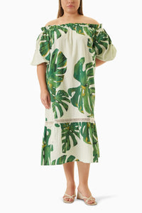 Featuring Ivy Dress by Sttavoss. This Dress is adorned with a delicate floral print and fine lace inserts, an off-shoulder, midi-length dress flatters every silhouette and is ideal for either day or formal evenings.