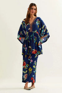 Featuring Izar Kurta Set by Label Earthen from Loom Florist Collection. The short kaftan co-ord set showcases nostalgic floral charm, making it ideal for modern women festivities with its blend of timeless elegance and contemporary style.