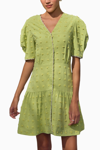 The timeless classic parrot green dress will be your dress for every season. Features a collar neck with lace detailing. Style this dress with heels and accessories to make a statement.