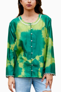 Featuring Jade Rogue Shirt by URAIB from The Colored Castle Collection. Tailored from Chanderi fabric, this shirt boasts a bold and stylish look with its captivating tie & dye ensemble, ensuring a distinctive wardrobe essential.