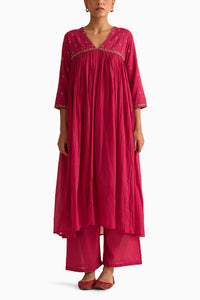 Featuring a Rani Pink Kurta Set in cotton base with resham and Pitta work on yoke.