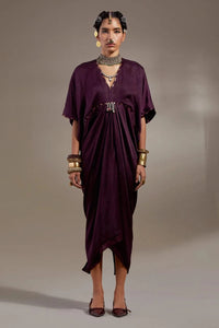 Featuring the Jamuni Anka Zia Trapeze Dress by Aseem Kapoor’s ANKA collection. A solid textured drape dress adorned with embroidered tassels, designed for a relaxed and comfortable fit that flows beautifully.
