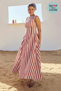 Our Jawai Dress is designed using striped cotton fabric. It features a boat neck, a concealed zip at the back, and a soft mulmul inner lining for a comfort fit.