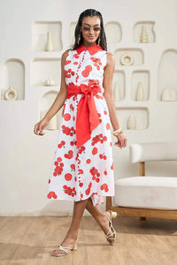 Fresh, fun, and full of flavour, this A-line midi in crisp white rayon slub is summer's sweetest pick. Featuring an all-over tomato print, a solid contrast belt and a smart collar with fabric buttons, it’s equal parts playful and polished.