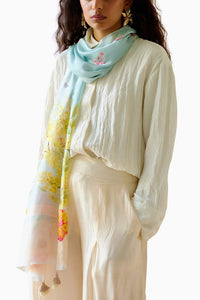 Crisp air, raw sunshine, the riverines in full glory with the flora and fauna - all the jewels of nostalgic orchards find a place on this easy to dress stole that speaks volumes about comfort.