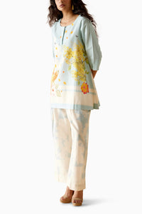 Fabric- Pure Linen Colour- Multicolor, White, Aqua Fit- Loose Fit Components- 2 Product code- SVEMOHKSS2339