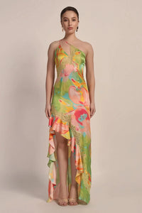 Step into the spotlight with the Jolene Mahé Long Dress, a stunning backless design crafted with luxurious elegance. It features a low-cut back, delicate lace, intricate cut-work, adjustable straps for a perfect fit, and romantic ruffles, turning every moment into a runway moment.