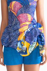 Featuring Joor Blue Shorts by Saaksha & Kinni from Botanica Collection. These high waist shorts with pockets offer a sleek, tailored fit with practical pocket details. Perfect for a stylish yet comfortable look, they are versatile enough for casual outings or relaxed days.