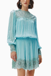 The Juena Blue Embroidered Dress features intricate blue embroidery on a chic, short dress. This elegant yet playful design offers a perfect blend of style and sophistication, ideal for both casual and semi-formal occasions.