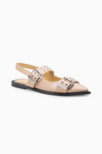 The Juliana Nude Ballerina features sleek patent leather with a pointed toe, offering the stylish appeal of stilettos with the comfort of flats. Elegant and versatile, these ballerinas are perfect for making a statement while keeping your feet comfortable. A chic addition to any outfit!
