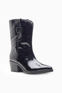 These black ankle boots, with their cowboy boot-inspired vibe, bring a bold, western touch to your wardrobe. Featuring a unique design, they effortlessly combine timeless style with a modern edge for a standout look.
