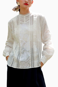 Delicately hand-embroidered billowy top that takes you back to the olden era.