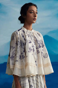 Featuring soft pleats gracefully descending the shoulders, our feminine and playful gathered shirt is a versatile piece that seamlessly moves from casual street strolls to office chic. With a laid-back yet refined aura, this blouse is a timeless beauty to cherish. The dreamy design is enhanced with intricate lace accents and hand-screen printed motifs, injecting a daily dose of allure and sophistication. Combining comfort and style, this shirt is a charming choice for those who appreciate a touch of everyday glamour, whether wowing the office or wandering through the streets.