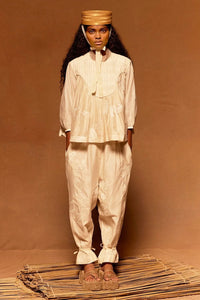 The Kaeru Yoke Top is a masterclass in refined designand exceptional artistry. Adorned with intricate shelltucks , the yoke creates a beautiful focal point,flowing gently into a soft and flattering appliquesilhouette. The tops graceful drape offers versatility,easily transitioning from casual settings to moreformal occasions with effortless sophistication.