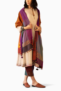 Composition: Kurta- Chanderi, Slip- Cotton, Pants- Cotton & Stole- Silk Cotton