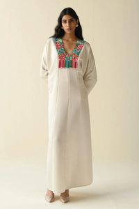 This off-white kaftan with a multicolor bead design is a stylish and versatile choice. Perfect for any occasion, it can be dressed up with accessories for formal events or kept simple for casual outings.