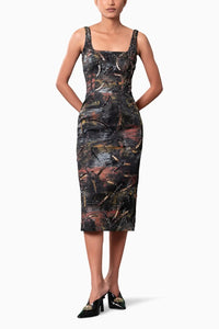 The Kagé Embroidered Dress features a form-fitting silhouette, beautifully accentuated by intricate hand-embroidery throughout. This elegant design combines craftsmanship and sophistication, making it a standout piece for any occasion.