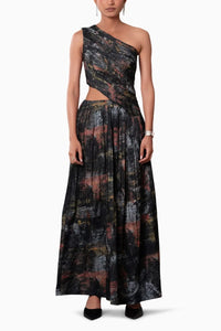 The Kagé Maxi Dress is a stunning, modern design featuring a one-shoulder neckline and a pleated bodice for added texture. The cut-out detailing at the side adds an edgy, contemporary touch, making this dress both elegant and bold for any special occasion.