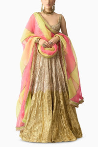 Composition: Lampi, Silk Organza Lining: Cotton, Shantoon Color: Silver Gold Closure: Back Hook And Side Zip Components: 3 Product Code: SVEITRHG002