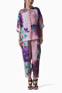 Elevate your wardrobe with this stunning pink floral printed handwoven linen kimono shirt, perfectly matched with coordinating pants. This ensemble embodies both elegance and ease, making it an ideal choice for various occasions.