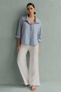 Featuring the Kha Sky Blue Overlap Shirt by Anaash's AUR collection. Crafted in breathable linen, this relaxed fit shirt in a soothing sky blue hue features a stylish overlap silhouette. It’s a perfect blend of minimal charm and easy sophistication for everyday wear.